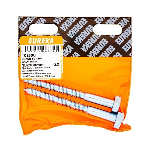 R21.96 inc. Vat Coach Screw Galv Mild 10X100Mm Q:2 4 in stock Coach Screw Galv Mild 10X100Mm Q:2 quantity Add to cart SKU: EUR-1CE80U Categories: Bolts Nuts Screws & Anchors, Consumables, Electrical, Tools