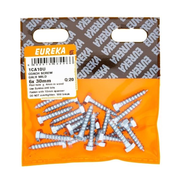 HomeCoach Screw Galv Mild 6X 30Mm Q:20
