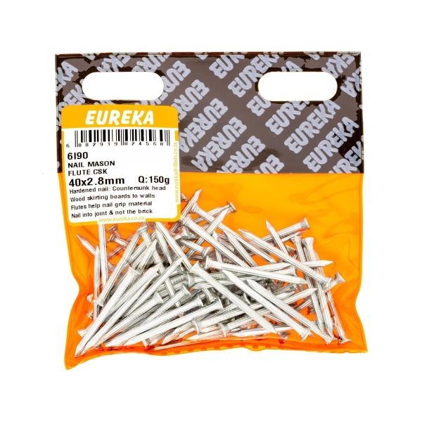 R44.51 inc. Vat Nail Mason Flute Csk 40X2.8Mm Q:150G 5 in stock Nail Mason Flute Csk 40X2.8Mm Q:150G quantity Add to cart SKU: EUR-6I90 Categories: Bolts Nuts Screws & Anchors, Consumables, Electrical, Tools