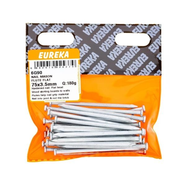 R46.76 inc. Vat Nail Mason Flute Flat 75X3.5Mm Q:180G 5 in stock Nail Mason Flute Flat 75X3.5Mm Q:180G quantity Add to cart SKU: EUR-6G90 Categories: Bolts Nuts Screws & Anchors, Consumables, Electrical, Tools