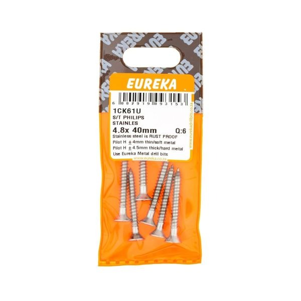 R27.60 inc. Vat S/T Philips Stainles 4.8X 40Mm Q:6 2 in stock S/T Philips Stainles 4.8X 40Mm Q:6 quantity Add to cart SKU: EUR-1CK61U Categories: Bolts Nuts Screws & Anchors, Consumables, Electrical, Tools