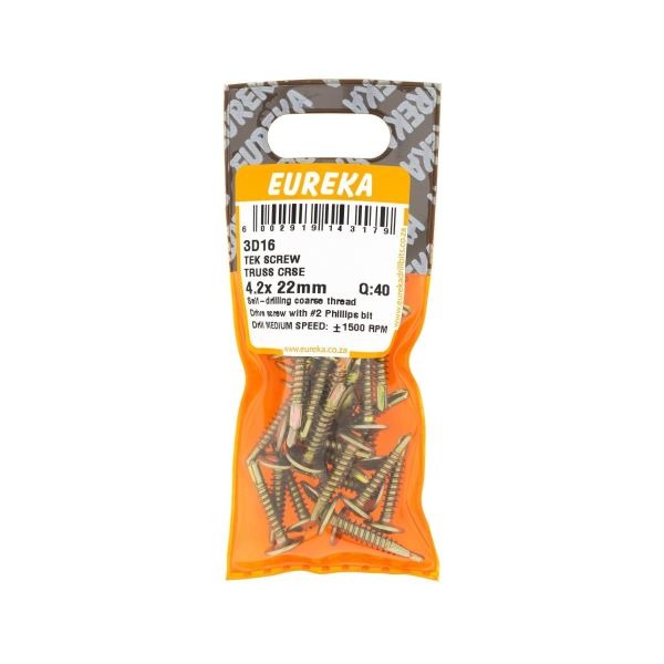 R53.52 inc. Vat Tek Screw Truss Crse 4.2X 22Mm Q:40 4 in stock Tek Screw Truss Crse 4.2X 22Mm Q:40 quantity Add to cart SKU: EUR-3D16 Categories: Bolts Nuts Screws & Anchors, Consumables, Electrical, Tools