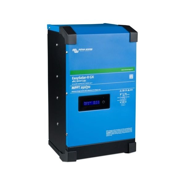 The Victron EasySolar-II 48/3000/35-32 MPPT 250/70 GX combines a MPPT Solar Charge Controller, an inverter/charger and AC distribution in one enclosure. The product is extremely easy to install and requires very little wiring.